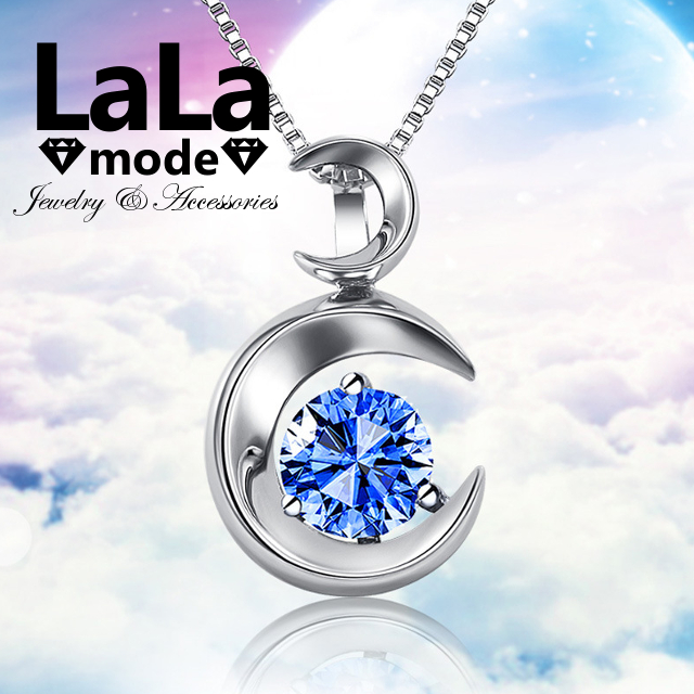 ネックレス レディース 月 ムーン 三日月 ブルー 青 クリア CZダイヤモンド AAAA キュービック ジルコニア シルバー プラチナ コーティング仕上げ アレルギー対応 送料無料 ゴージャス エレガント 豪華 プレゼント 人気 シンプル アクセサリー ジュエリー