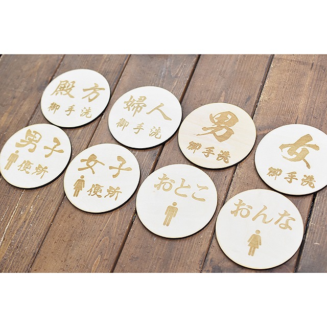 木製サインプレート◆御手洗 トイレ TOILET 男性 女性 漢字 案内◆メッセージプレート◆ドアプレート 丸形◆レーザー加工◆ハンドメイド◆各種◆