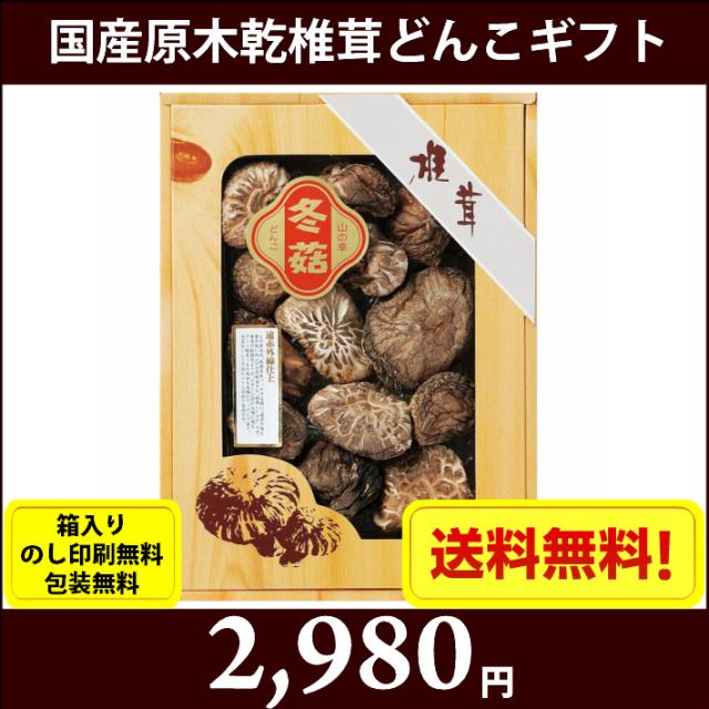 国産原木乾椎茸どんこギフト 7685-062 全国送料無料 箱入り、のし印刷無料、包装無料 お中元 お歳暮