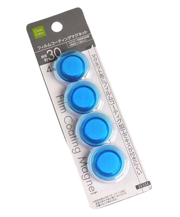 フィルムコーティングクリアカラーマグネット 直径3cm 4個入 [色指定不可] (100円ショップ 100円均一 100均一 100均)