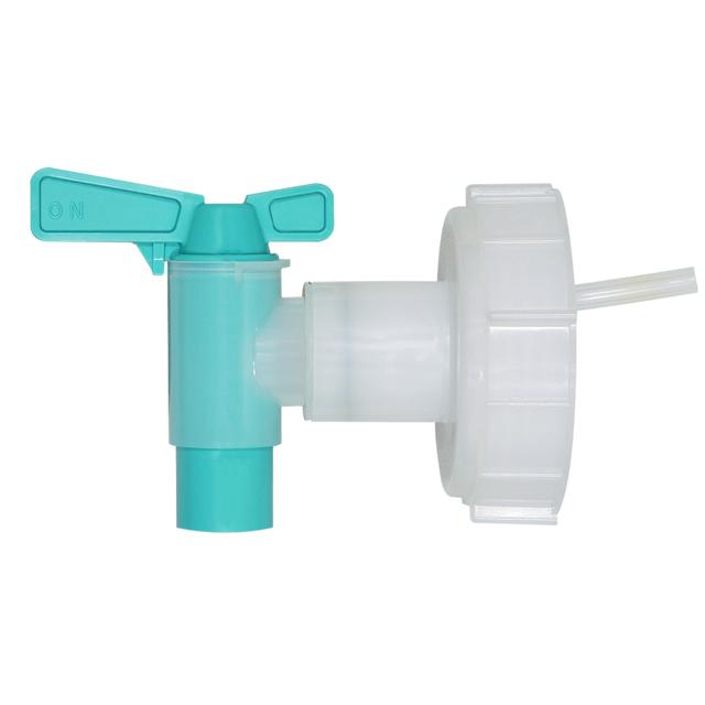 水を出したり、止めたりできるポリタンク用蛇口コックです。タンクネジ部外径65mm用。