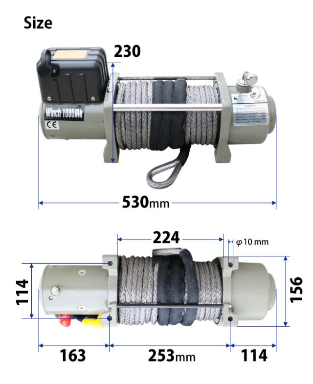 | 付属品 | ・コントローラー(有線/無線) ・電源コード ・ウインチフック ・フェアリード ・本体取付けボルト(M10×40mm)×4本 ・フェアリード取付けボルト(M10×30mm)×2本 ・ウインチカバー |