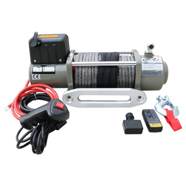 電動ウインチ DC12V/DC24V 軽量タイプ シンセティックロープ 最大牽引能力 4500kg 電動ホイスト 無線/有線リモコン ウィンチ フェアリード プレゼント KIKAIYA