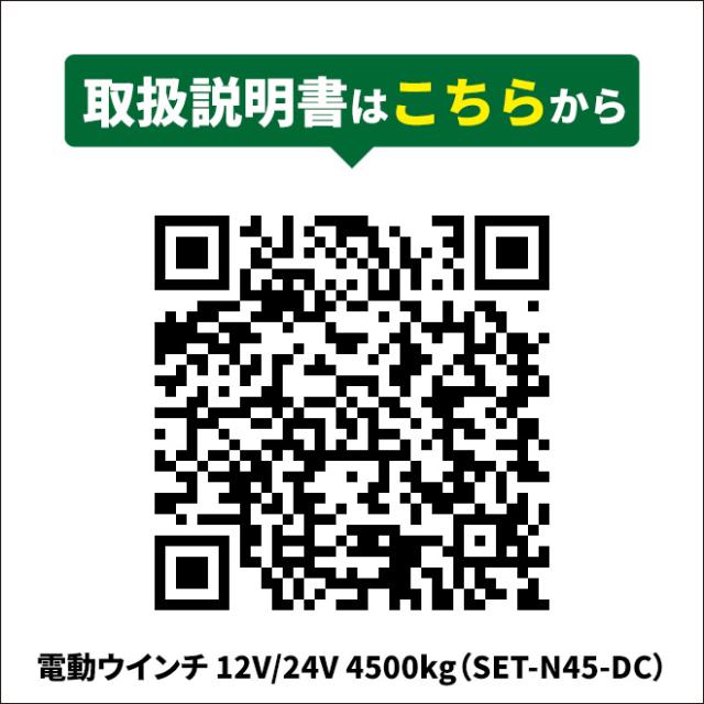 無線/有線リモコン機能付♪この商品はDC12V/DC24V作動です ●車のDC12V/DC24Vにバッテリーに繋げて使用する、最大牽引能力4500kgの 電動ウインチです ●シンセティック(合成)ロープは引っぱりに強く、軽くて扱い易いです ●アウトドア・レジャー・現場作業など、重量物を牽引&引き上げる際に活躍します ●狩猟の際の獲物回収、スタック車両の救出、材木の引っ張り出しなどにも使えます ●軽量なので、ロープの取り回し作業が楽に行えます ●有線コントローラーはもちろん、無線リモコンも付いているので、 車両から離れての ウインチコントロールが可能です ●巻き上げすぎ防止のフェアリード、専用ウインチカバーが 付いています ●クラッチノブをOFFにするとドラムはフリーになるので、素早くワイヤーを手で 引き出す事ができます ●無線リモコンは30m以内でご使用下さい (無線到達可能距離:約60〜70m) 【ご注意】 ※必ずバッテリーに直接つないでください 充電器・インバーター等に接続してもご使用いただけませんのでご注意ください ※本製品は水平に牽引する仕様のものです、上下の荷揚げはできません ※各部ボルト・ナット・配線ターミナル等は、念のため増締め等を行ってから ご使用下さい ★ウインチアクセサリーも別途販売しております 品番:SET-N45-DC |