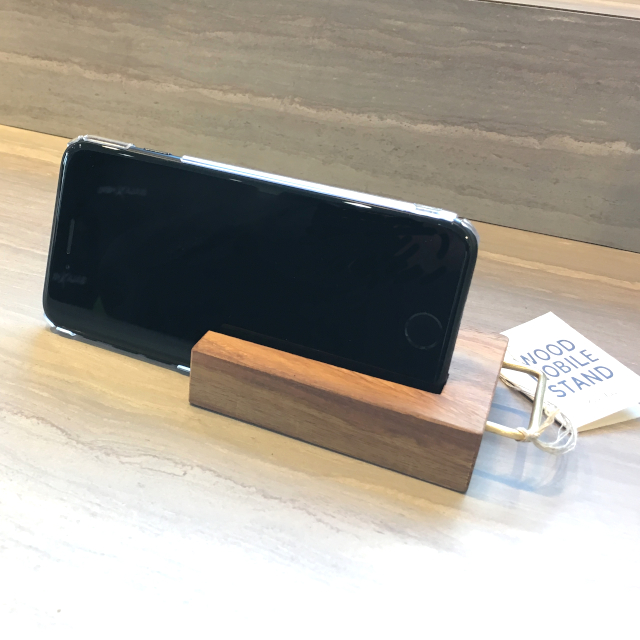 ウッド製のモバイルスタンド。