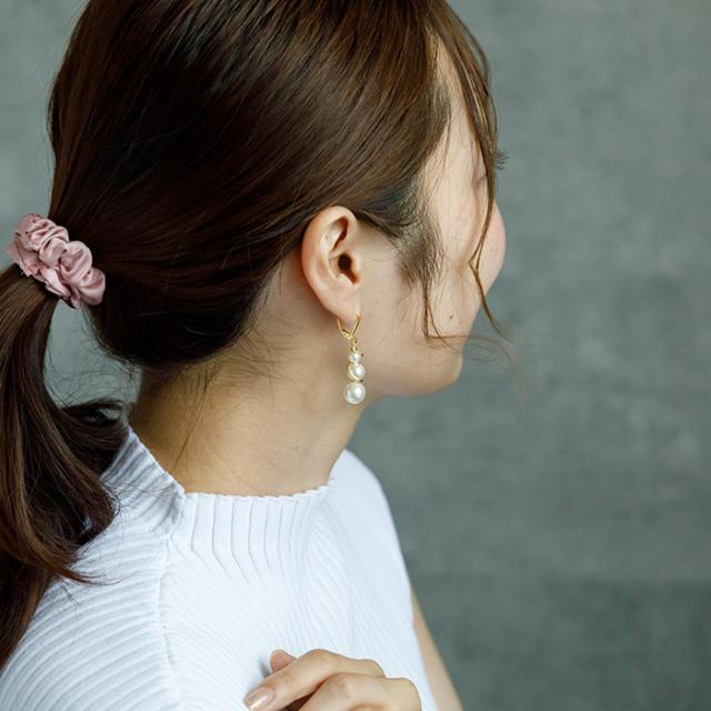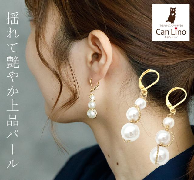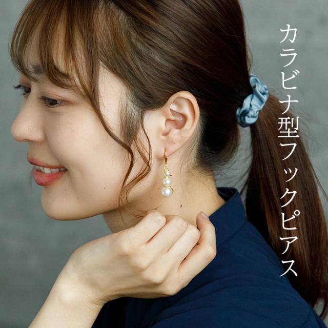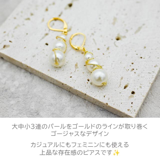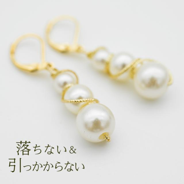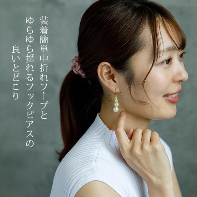 ピアス 金属アレルギー サージカルステンレス フープ 落ちない 引っかからない 外れにくい フック 3連パール イミテーション ゴールド