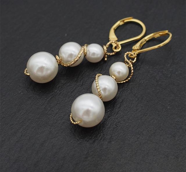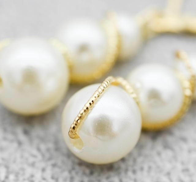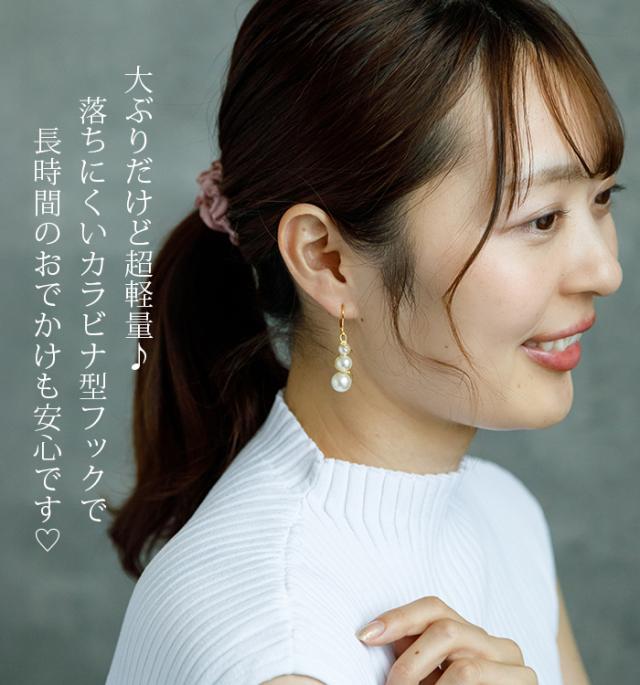 | 着脱簡単で引っかからない中折れフープとゆらゆら揺れるフックピアスの良いとこ取りな、まったく新しい形のフックピアスができました! 大中小、絶妙サイズのパールが3つ、さらにそのまわりをクルクルとゴールドのラインが取り巻く、ゴージャスな雰囲気の大きめパールピアス! 大ぶりでも超軽量なプラスチックパールなので、耳への負担は大幅に軽減♪ オンラインでも目立つ、パール×ゴールドの上品な華やかさに気持ちも上がる? 毎日にちょっと贅沢な気分を♪ |