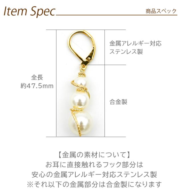 | 全長:約47.5mm フック部分:縦約17mm×横約11.8mm ポスト部分太さ:約0.8mm パール:直径約10mm/8mm/6mm |