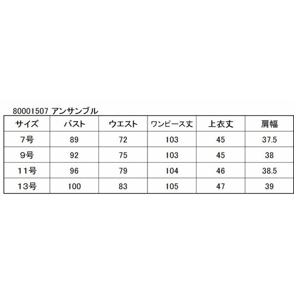 バスト92 ウエスト75 ワンピース丈103 上衣丈45 肩幅38