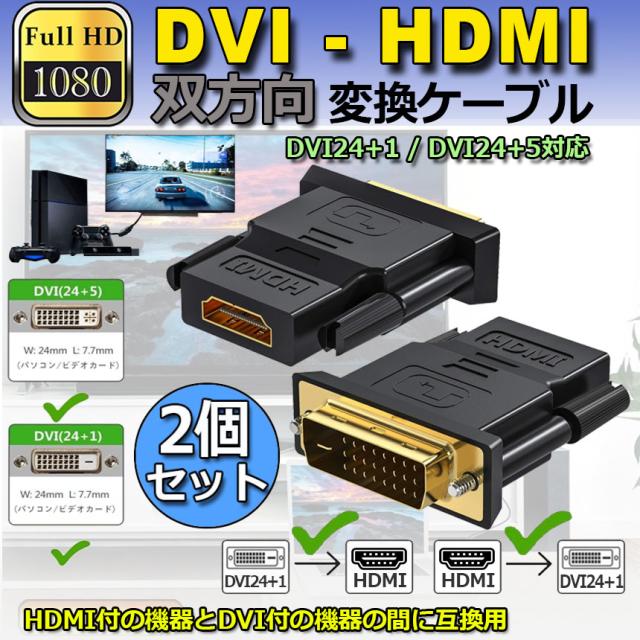 HDMI DVI 双方向伝送 アダプター 2個セット HDMI to DVI/DVI to HDMI どちらも接続可能 1080P高解像度 フルHD 金メッキ端子 タイプAオス-DVI-D 24+5/24+1 対応 レコーダー パソコン TV モニター プロジェクター等に適用