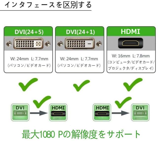 『対応機種』 PC、新型PS4Pro、PS4スリム、PS3、WiiU、Xbox One、Xbox360、Chromecast、ディアプレーヤー、HDDレコーダー等様々なHDMI接続機器をディスプレイ、プロジェクター、HDTV等に対応します。『双方向伝送』 HDMI to DVI、DVI to HDMI信号を双方向伝送可能する為、お手元のDVI 端子が搭載する機器(例えラップトップ/デスクトップ)からHDMI 端子が搭載するAV受信機、HDTV 、ディスプレイ等への信号伝送も実現できます。またDVI-I(24 +1)とDVI-D(24+5)コネクター搭載の設備に適用です。(単独のHDMIケーブルは別売りです)
