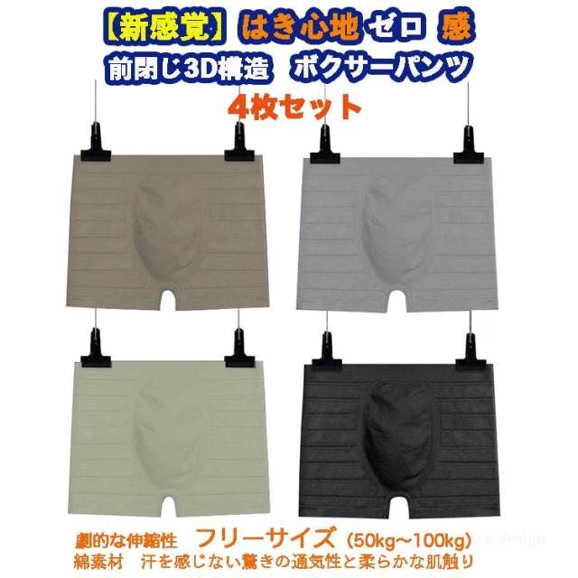 ボクサーパンツ メンズ シームレス ブリーフ 4枚セット 綿 フリーサイズ