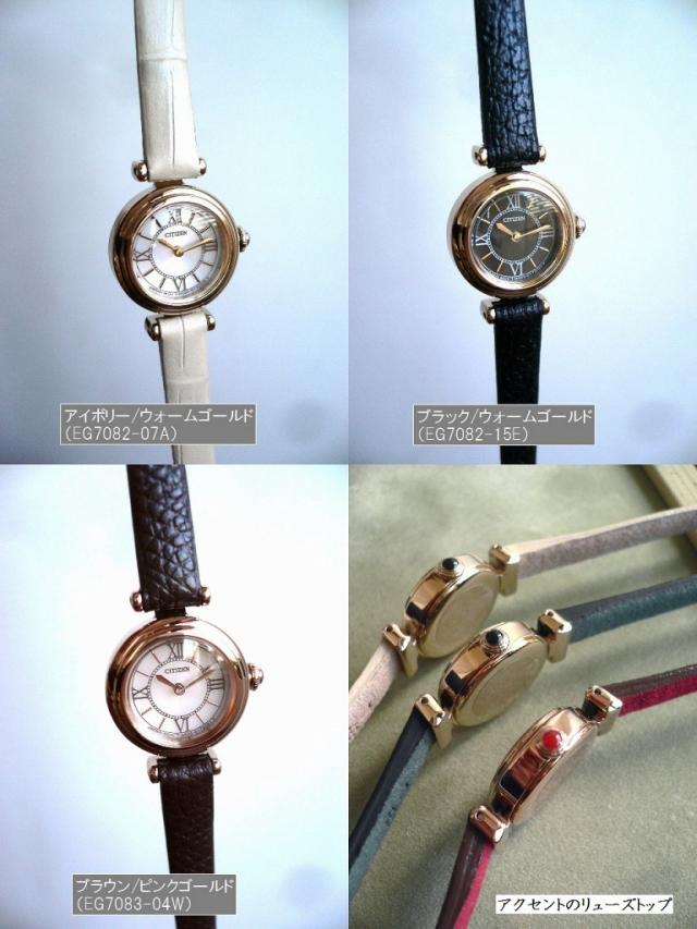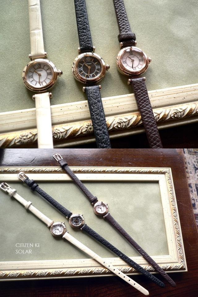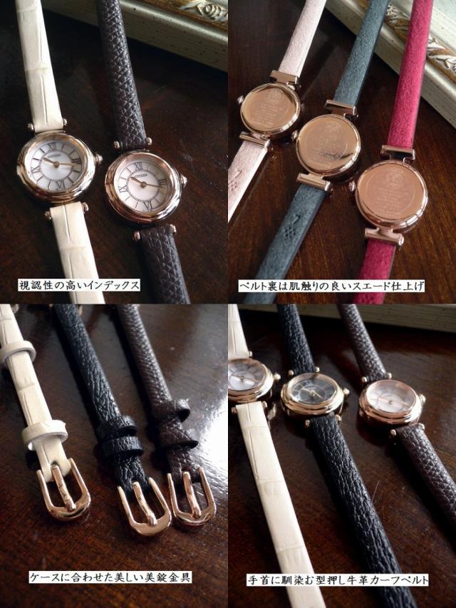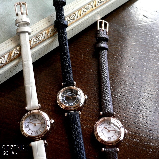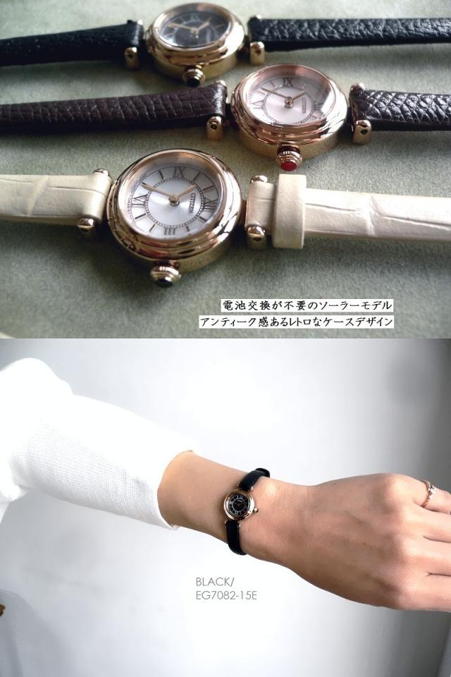 ノベルティ CITIZEN シチズン Kii キー レザーバンド ソーラー アンティークデザイン 腕時計 EG7082 EG7083 アイボリー/ブラウン/ブラック/ピンクゴールドル/