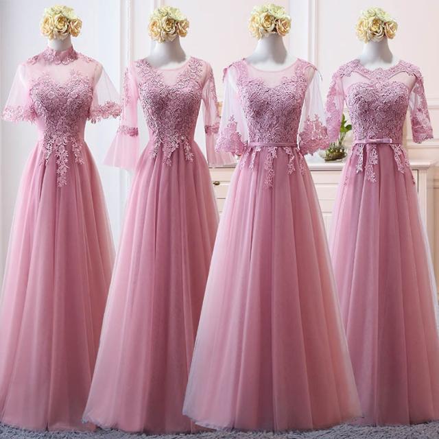 ブライズメイド ドレス ロング ピンク ロングドレス 演奏会 袖付き ドレス 結婚式 ドレス ロング 袖あり パーティードレス ロングワンピース ドレス 二次会フォーマルドレス 二次会 花嫁 パーティ 入園式 卒業式 発表会 入学式 dress 春 夏 秋 冬 da581s1s1s3
