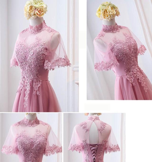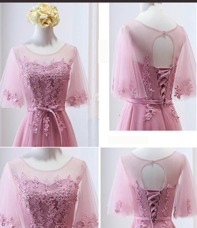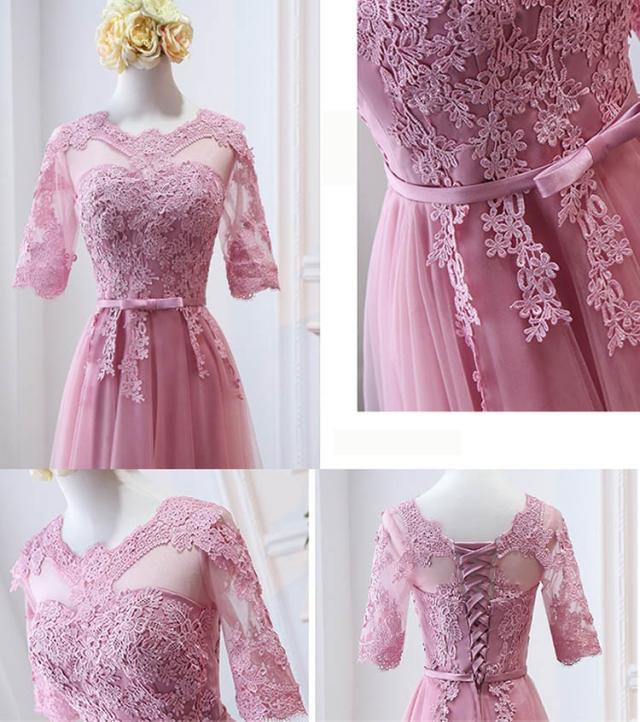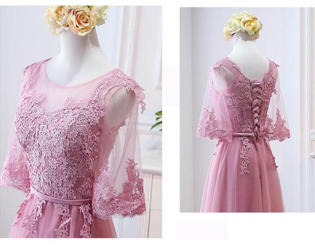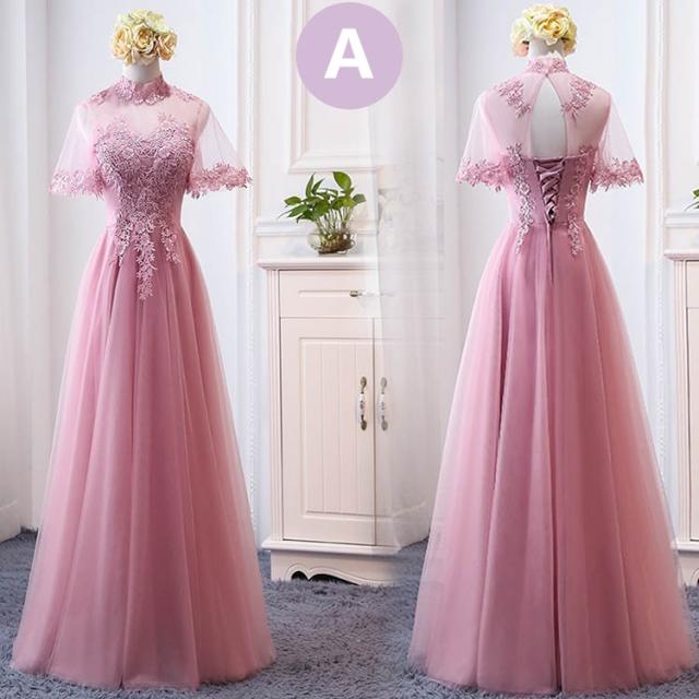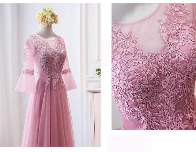 パーティードレス ブライズメイド ピンク ロングドレス 演奏会 袖付き 結婚式 袖あり