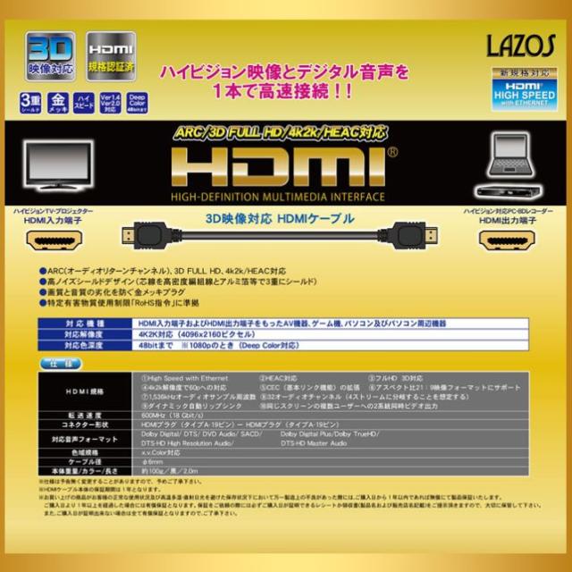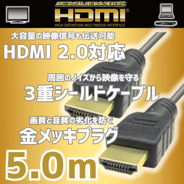 HDMIケーブル 5m HDMI2.0 4K 60Hz ハイスピード 3D映像 3重シールド 金メッキ ニンテンドー switch スイッチ PS3 PS4 PS5 対応 cable テレビ tv プロジェクター カメラ 5.0m 接続 TYPE A オス 3D イーサネット パソコン PC サブモニター 対応 Lazos L-HD5