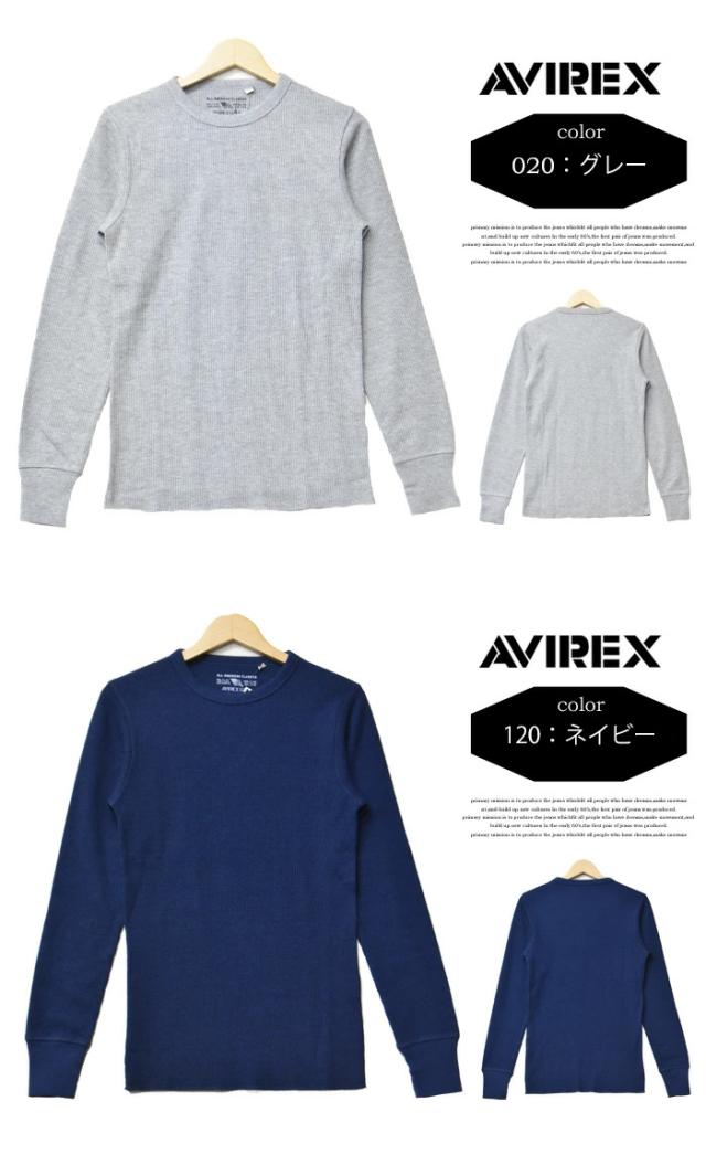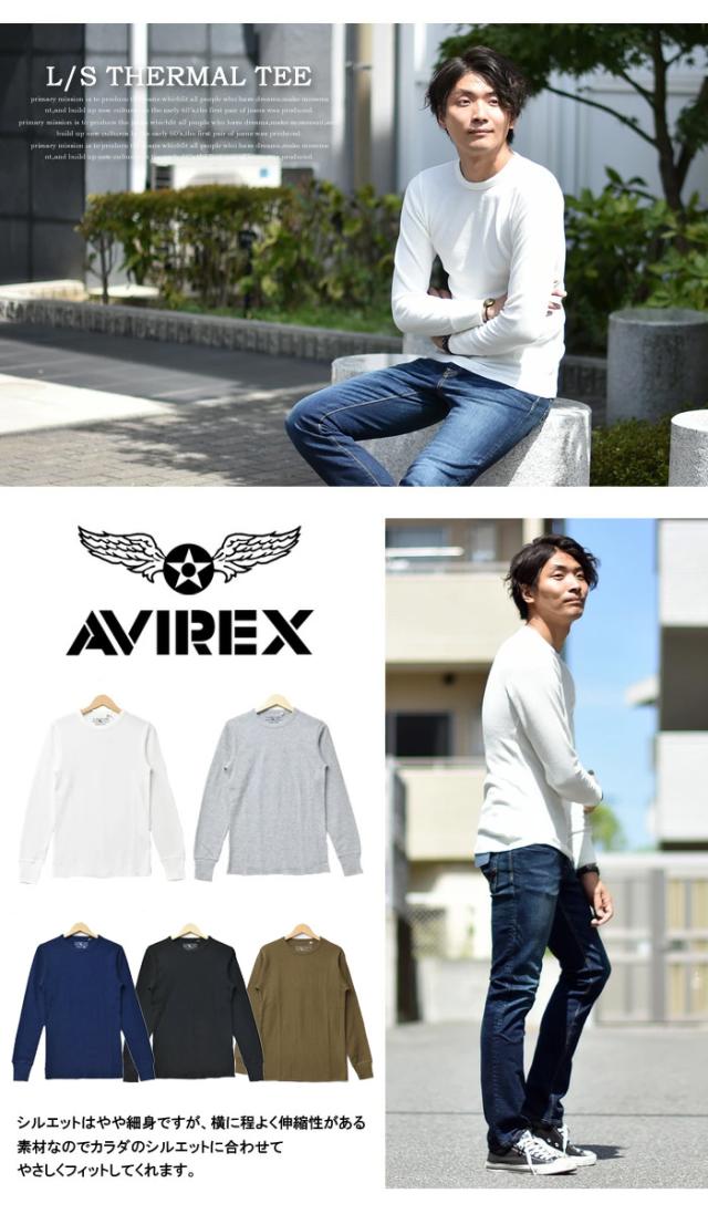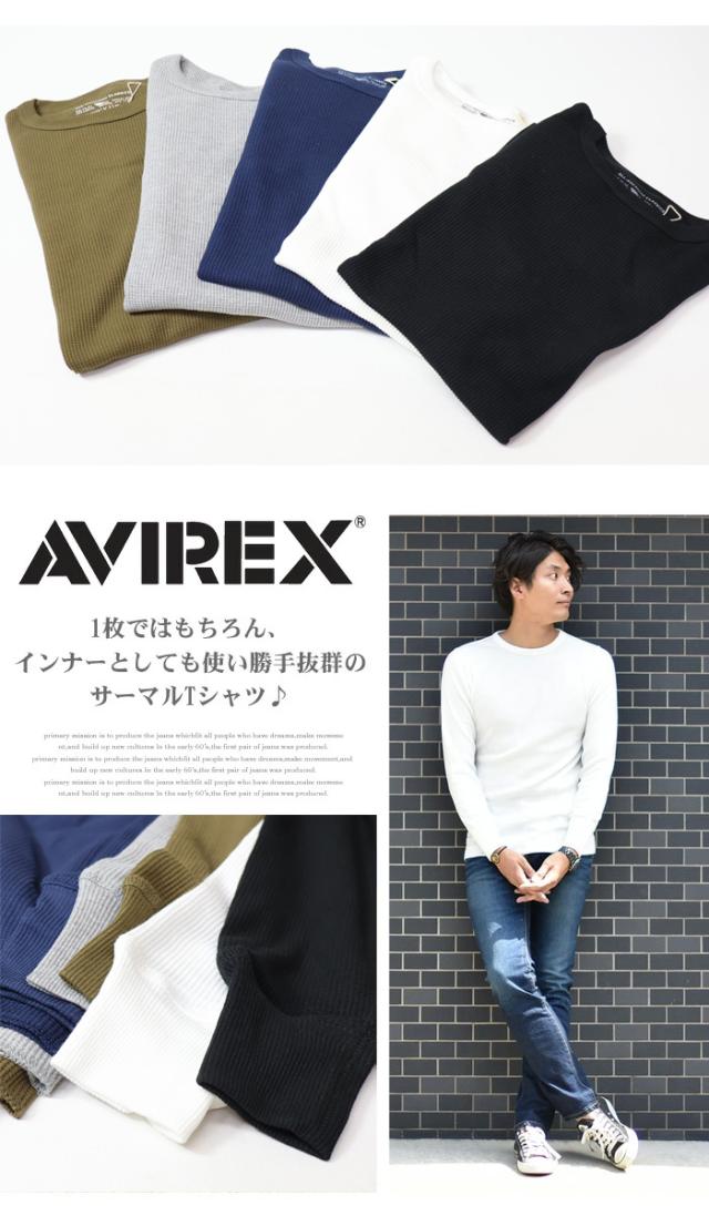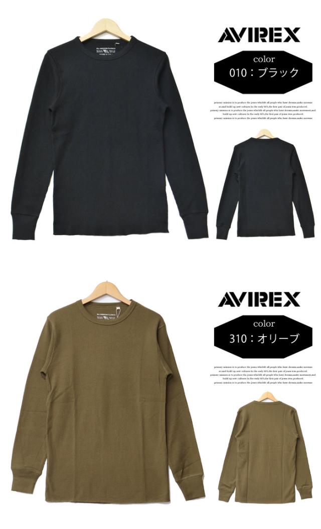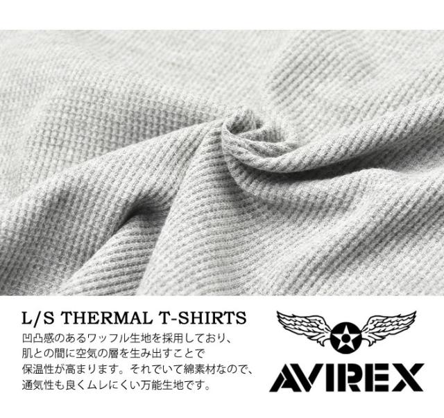 AVIREX アヴィレックス サーマル素材 クルーネック 長袖Tシャツ ロンT 長T 無地 メンズ ワッフル素材 アビレックス 783-3930006