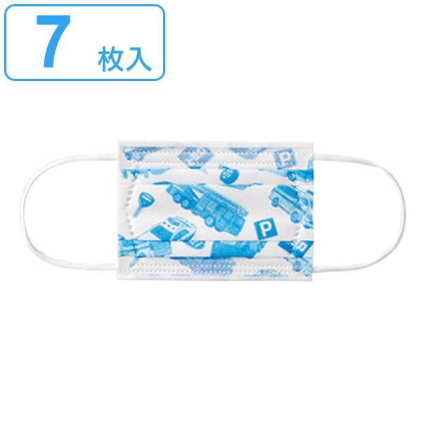 マスク 子供用 不織布 トミカ 7枚入 シール入 キッズマスク 子供用マスク ( 子ども用 子供 小さめ 男の子 車 消防車 給食 当番 ホコリ 花粉 埃 予防 防止 )