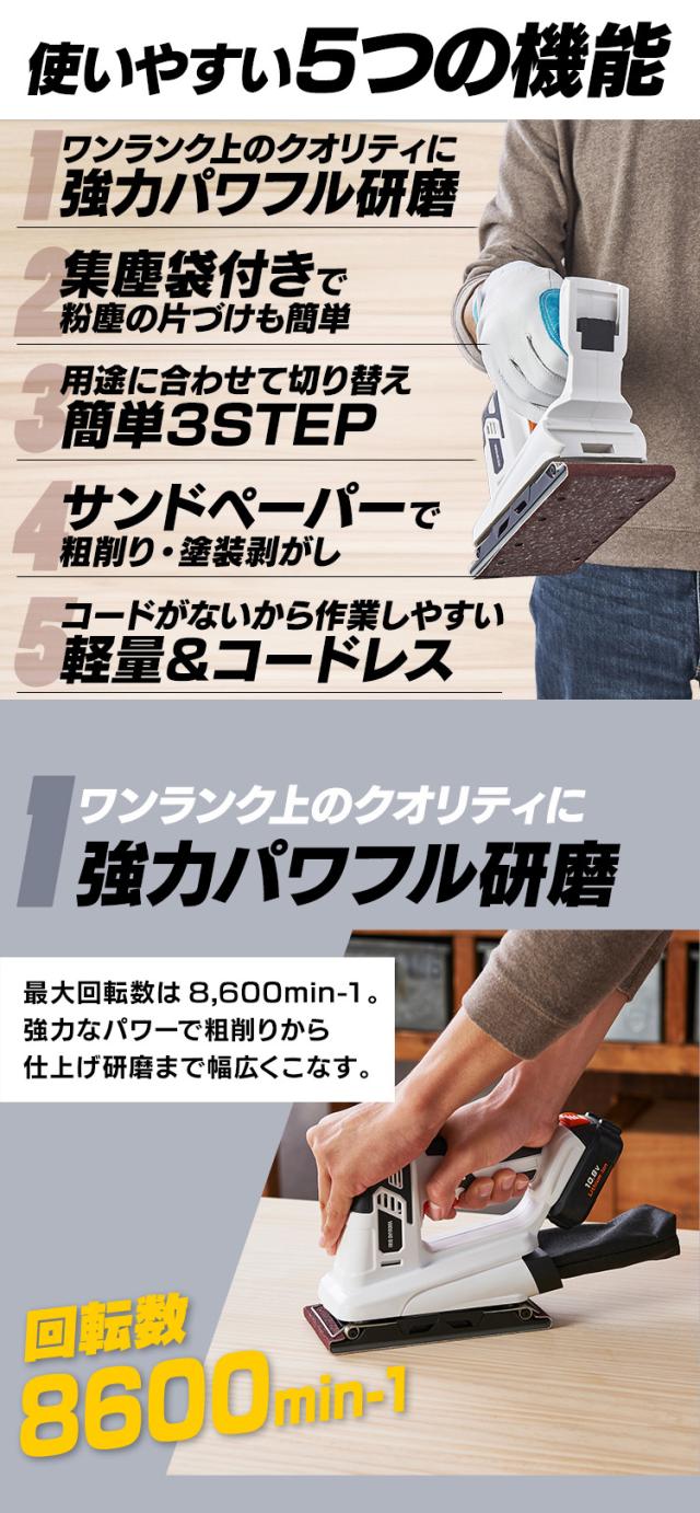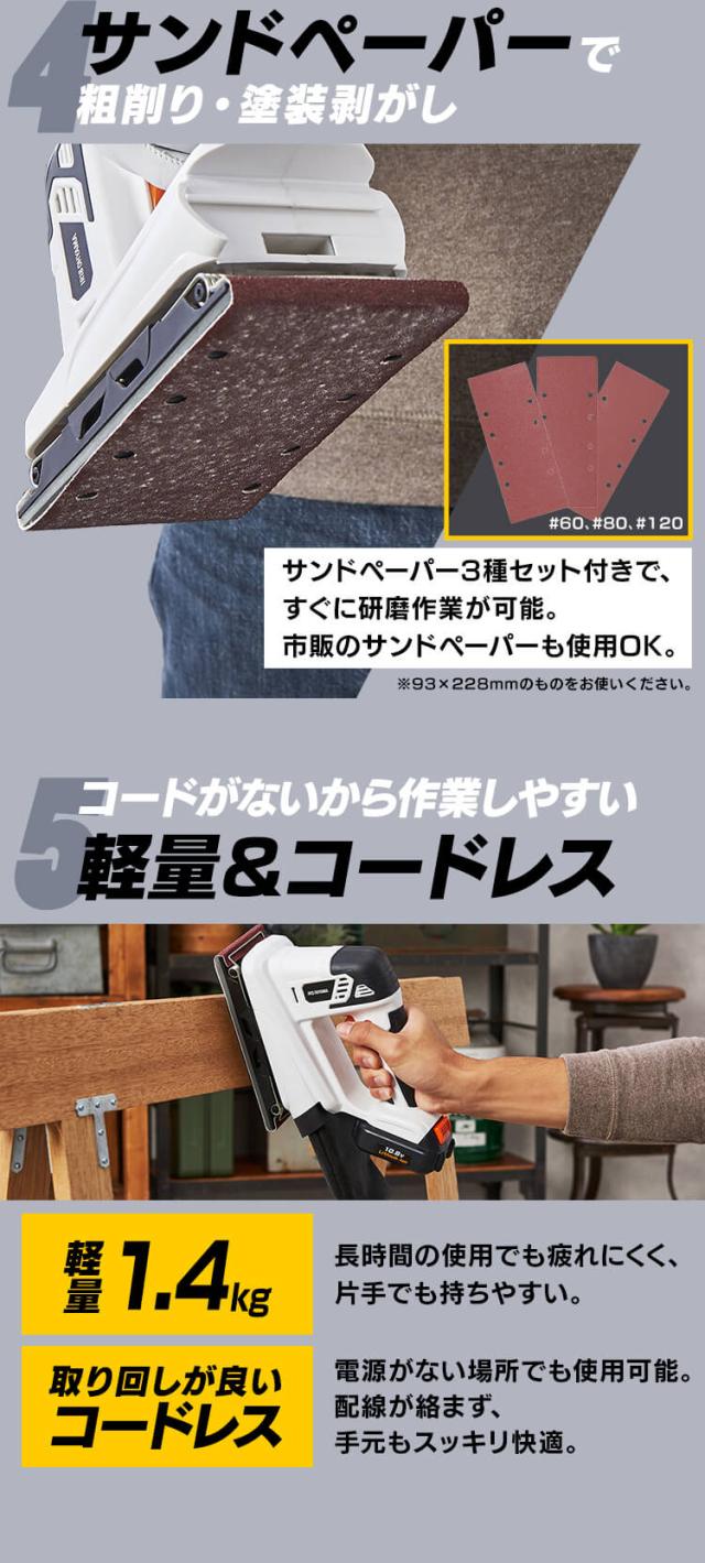 サンダ 充電式サンダ10.8V JSD919 アイリスオーヤマ ホワイト 充電式工具 充電式 工具 こうぐ コウグ 電動 電動工具 DIY 工作 diy 日曜大工 大工仕事 送料無料