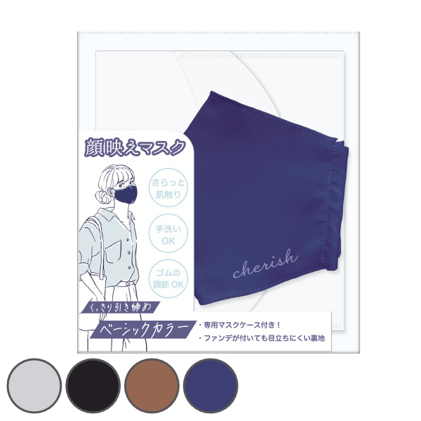 モードな雰囲気で小顔にも見える濃いめダークカラーの4色展開です。顔映えするカラーでキレイに見せてくれるお洒落なマスクです