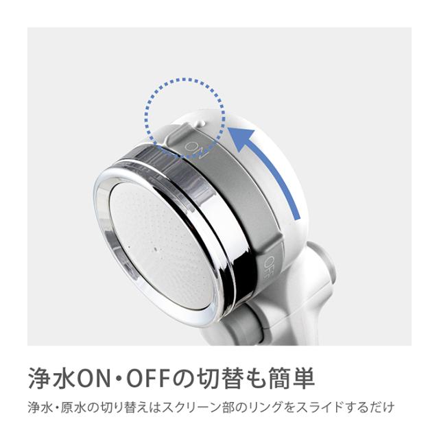 スクリーン部にある切り替えリングで、浄水のON/OFFが可能です。