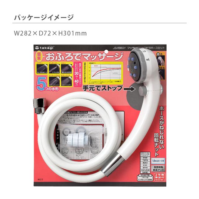 シャワーヘッド ホースセット タカギ 止水ボタン 節水 水圧 シャワー 5水形 節約 血行促進 ヒートショック ミスト リラクゼーション 肩こり G1/2 takagi JS456GY マッサージシャワピタ 2年間保証 公式 送料無料 手元スイッチ