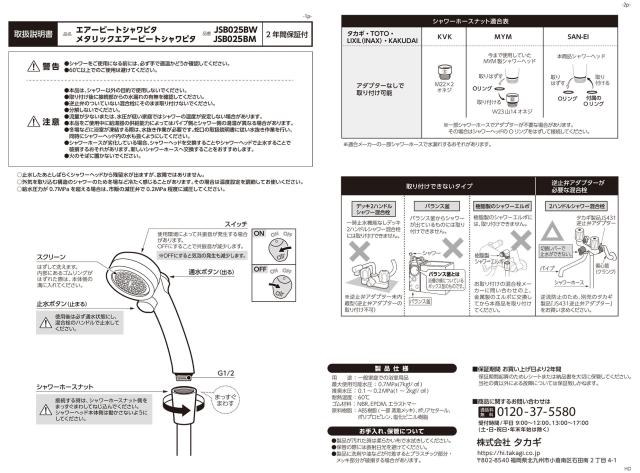 ●JSB025BM/メタリックエアービートシャワピタはこちら