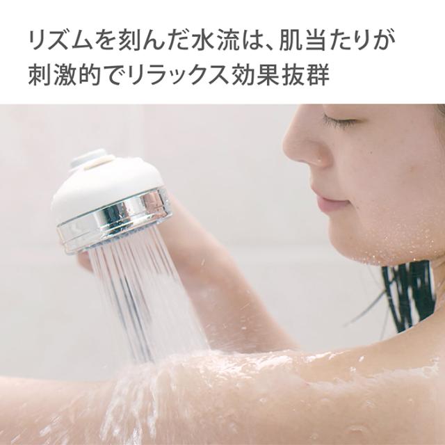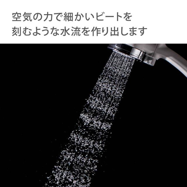 空気の力で心地よい刺激が感じられるシャワーヘッドです。細かいリズムでビートを刻むような水形が特徴です。