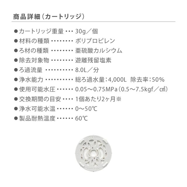 交換期間の目安:2か月(1日8分(64L)使用した場合) 浄水可能水温:0度〜50度