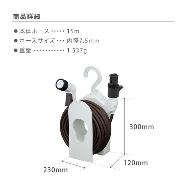 タカギ ホース ホースセット 15m 散水 コンパクト 軽量 スリムホース 収納 園芸 家庭菜園 ガーデニング 掃除 マンション テラス ベランダ 水やり 4水形 プール 水まき フック付き コンパクトリール ブラウン R115BR 内径7.5mm takagi 公式 2年間保証