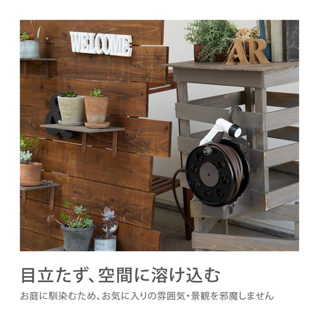 ベランダでの水やりに便利なコンパクトタイプのホースリールです。ご自宅の庭・外壁にマッチするブラウンカラーのホースを採用しています。