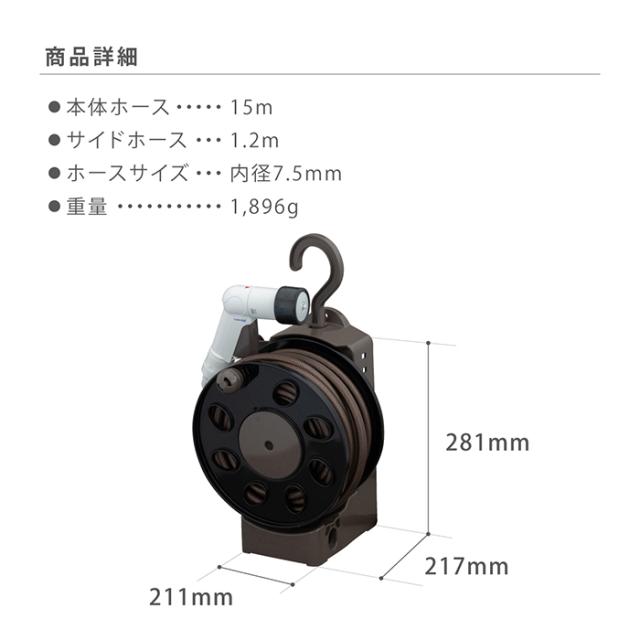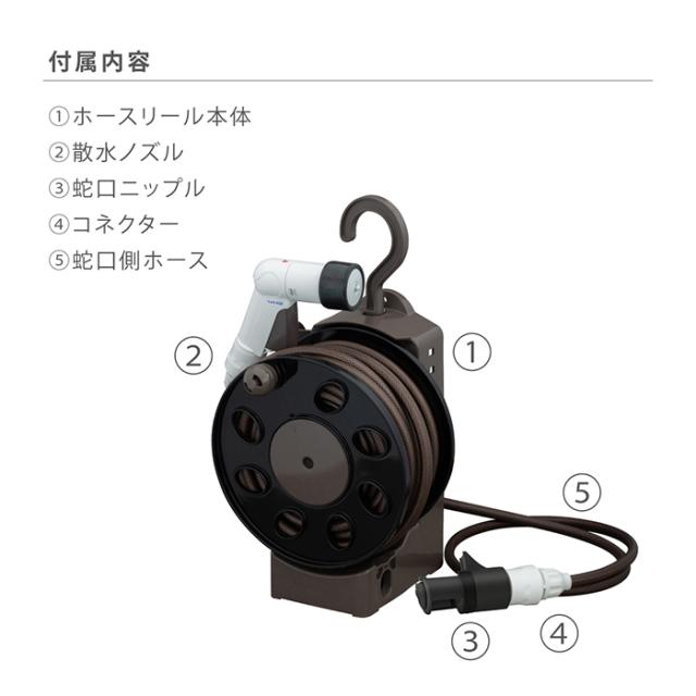 タカギ ホース ホースリール 15m 散水 コンパクト 軽量 スリムホース 収納 園芸 家庭菜園 ガーデニング 掃除 マンション テラス ベランダ 水やり 4水形 プール 水まき ノズルホルダー付き フック付き オーロラ LIGHT ライト ブラウン R1415BR 内径7.5mm takagi 公式 2年間保証