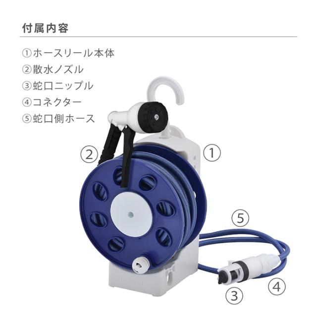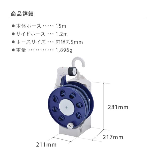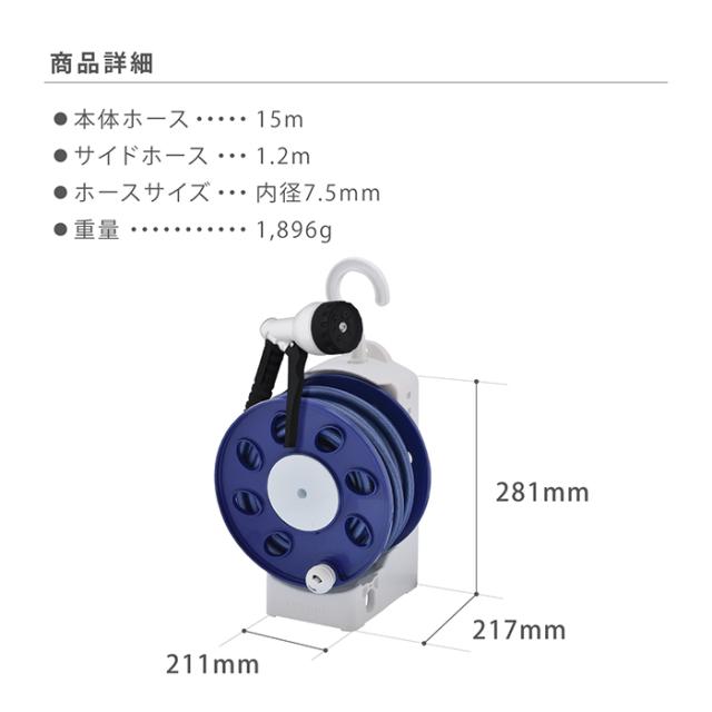 タカギ ホース ホースリール 15m 散水 コンパクト 軽量 スリムホース 収納 園芸 家庭菜園 ガーデニング 掃除 マンション テラス ベランダ 水やり 7水形 プール 水まき ノズルホルダー付き フック付き オーロラ LIGHT ライト ネイビー R1415NB 内径7.5mm takagi 公式 2年間保証