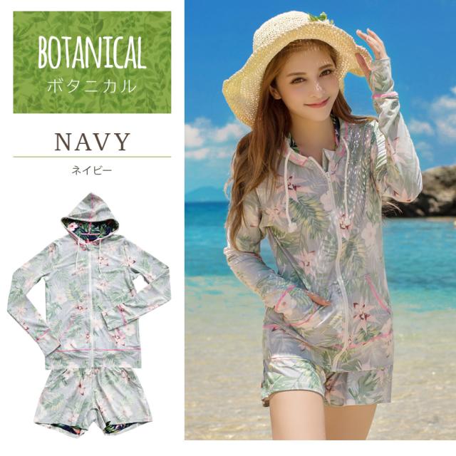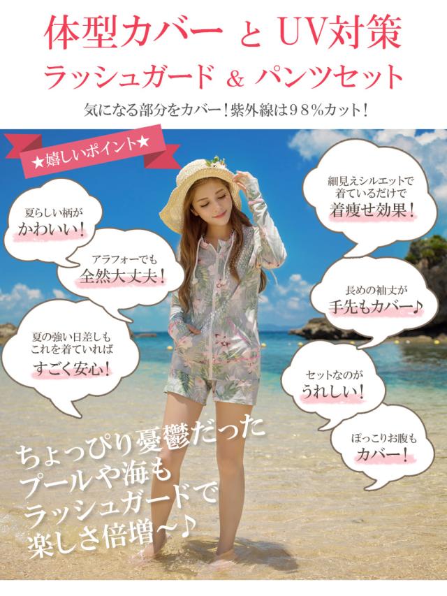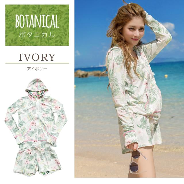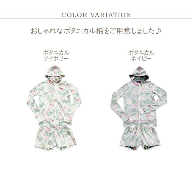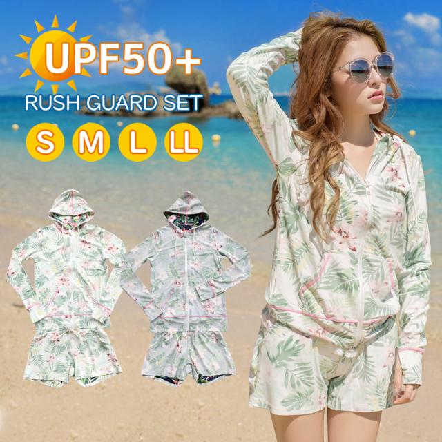 ラッシュガード レディース 上下セット パーカー パンツ 水着 長袖 UVカット率98% 紫外線カット 日焼け防止 速乾 ドライ ボタニカル 柄