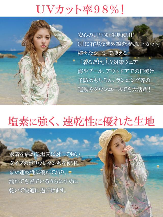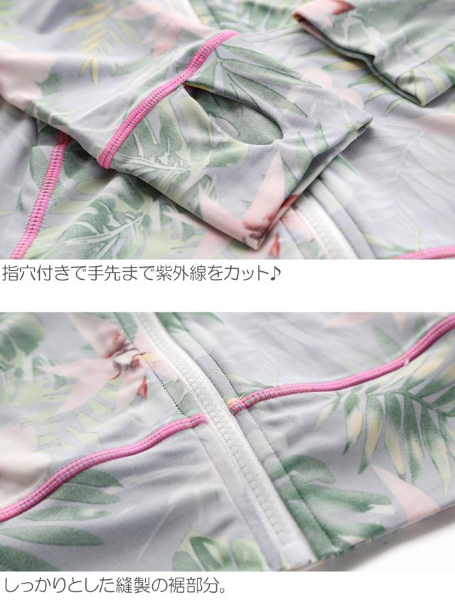レディース 長袖ラッシュガード UVカット 着るだけUV対策 トロピカル ボタニカル