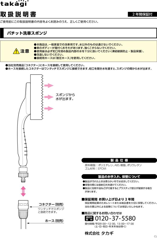 洗車ブラシ パチット洗車スポンジ G273 タカギ takagi 公式 安心の2年間保証