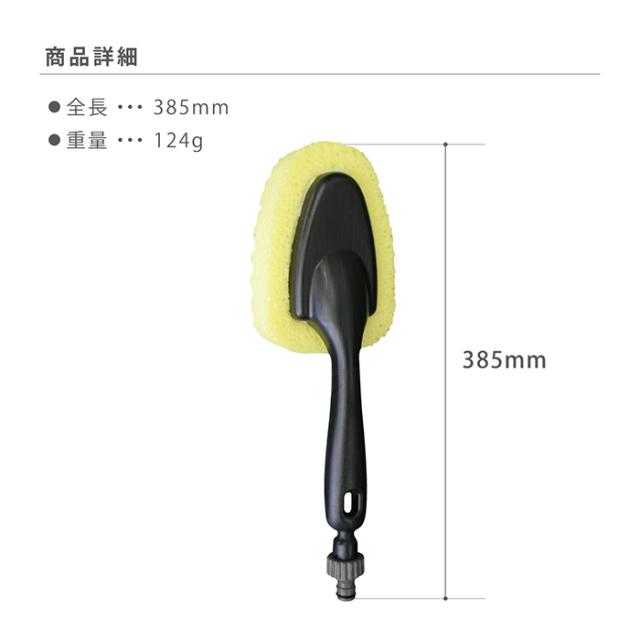 ホースの先端に散水コネクターがついたホース・ホースリールにつなげば、水をだしながら洗車ができるブラシです。
