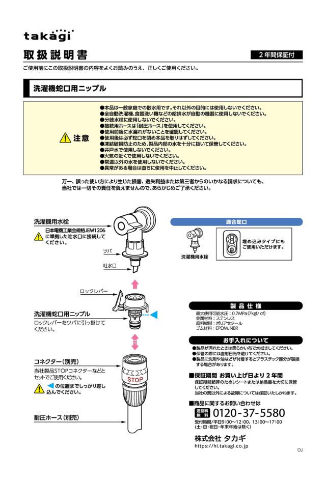 蛇口ニップル 洗濯機蛇口用ニップル GWA44 タカギ takagi 公式 安心の2年間保証