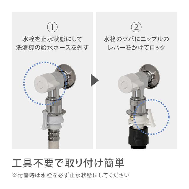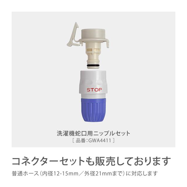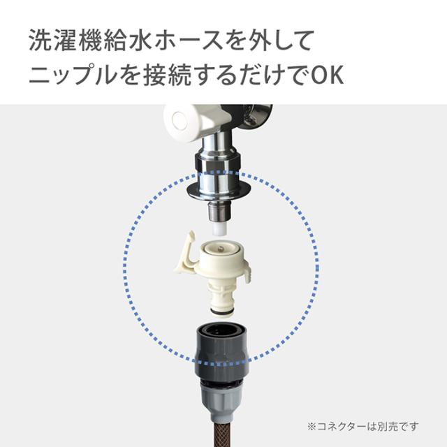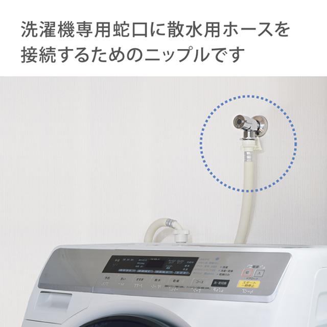 散水用ホースを洗濯機用蛇口に接続できる専用ニップルです。
