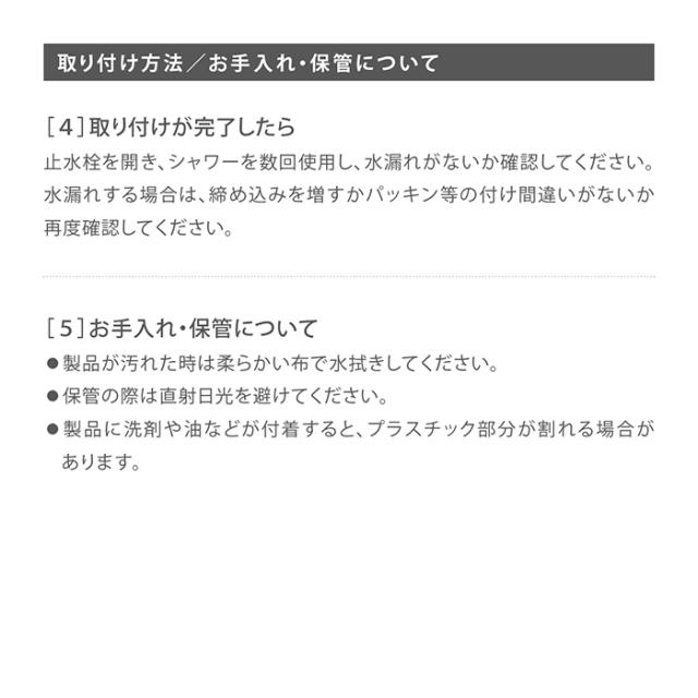 ・製品に洗剤や油などが付着するとプラスチック部分が割れる場合があります。