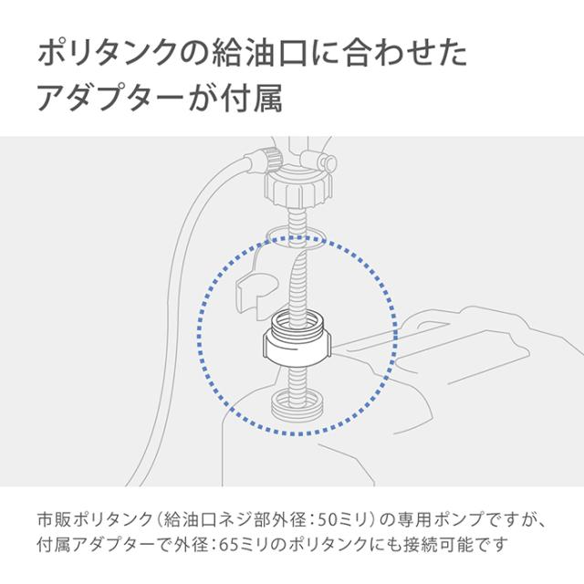 市販のポリタンクにセットするだけの手軽な空気圧ポンプです。