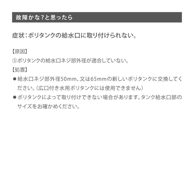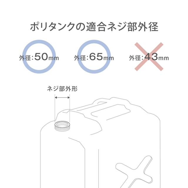 市販のポリタンク(給水口ネジ部外径50mm)専用です。