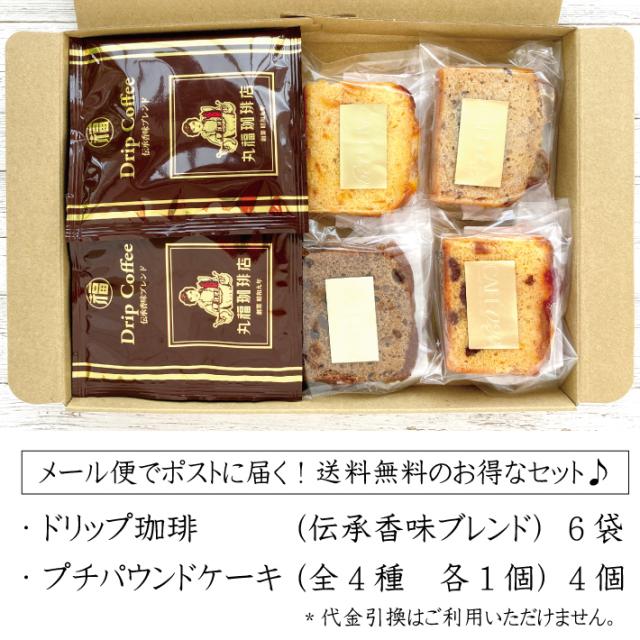 【公式】 丸福珈琲店 送料無料 メール便 お試しセット ドリップ伝承珈琲とプチパウンドケーキ4個 自宅用 ドリップコーヒー お菓子 スイーツ 焼菓子