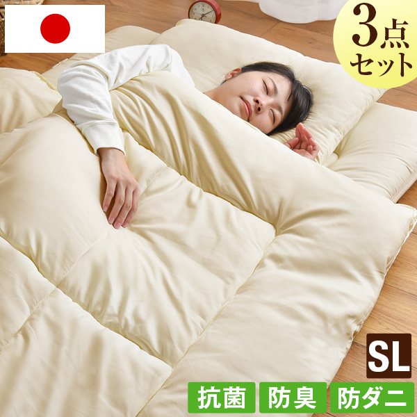【清潔ふとんセット】 防ダニ 日本製 布団 3点セット シングルロング 布団セット 抗菌 防臭 敷布団 掛け布団 枕 布団 新生活 来客用