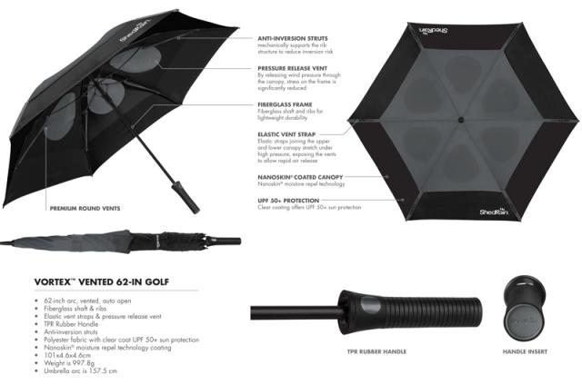 ShedRain VORTEX 晴雨兼用 UV アンブレラ ダブルキャノピー 全天候 ワンタッチオープン 145cm 【新品】 シェドレイン パラソル 日傘 雨傘 ゴルフ アウトドア メンズ レディース