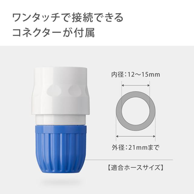 普通ホース(内径12-15mm/外径21mm)に対応しています。