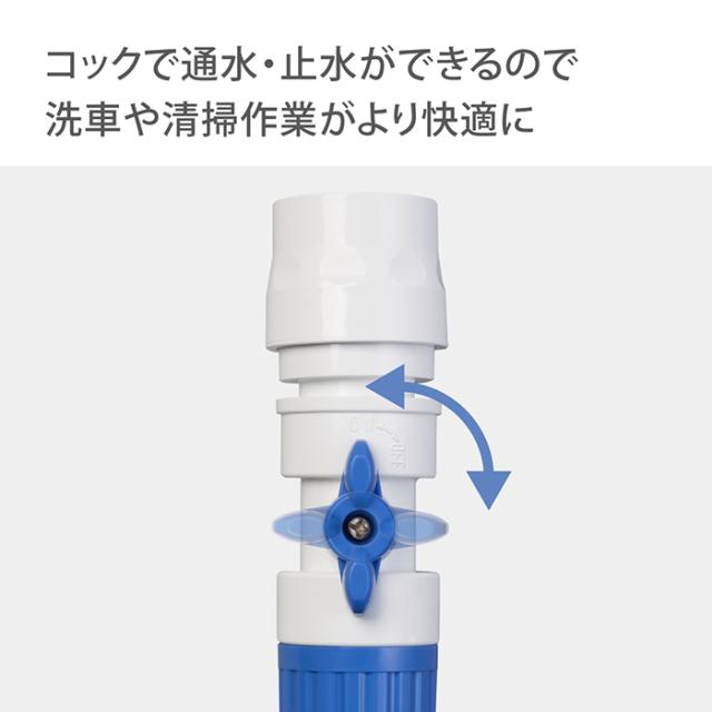 切替コックで通水・止水の切り替えができます。