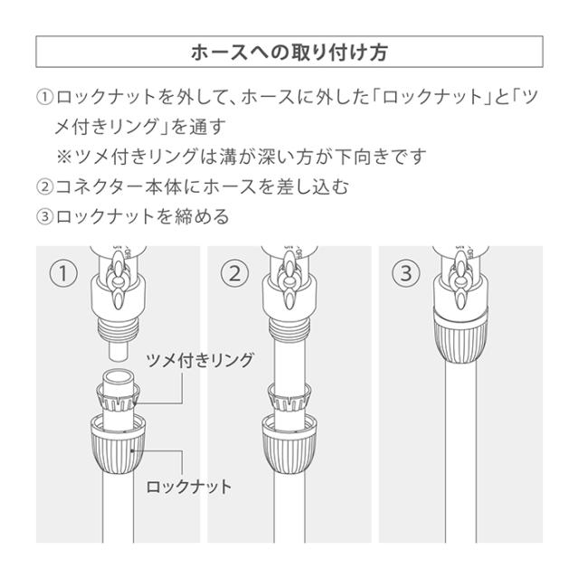 普通ホース(内径12-15mm/外径21mmまで)に対応しています。