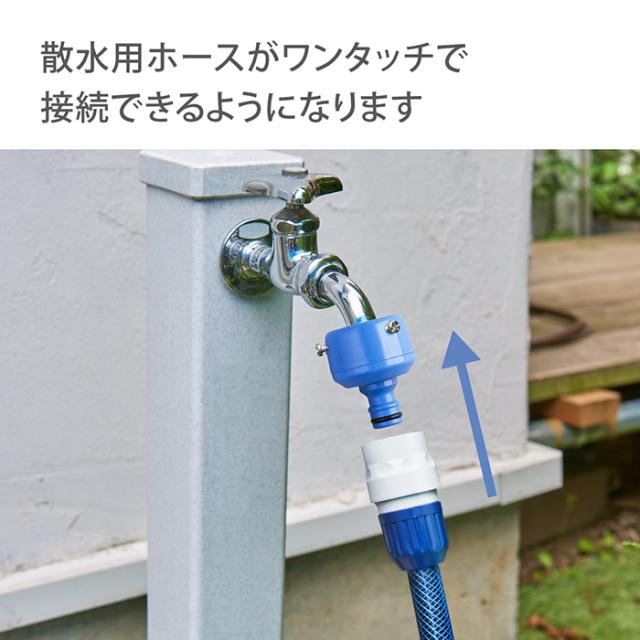 蛇口に取り付けて、コネクター(別売り)付きホースの取り外しがワンタッチで操作可能です。