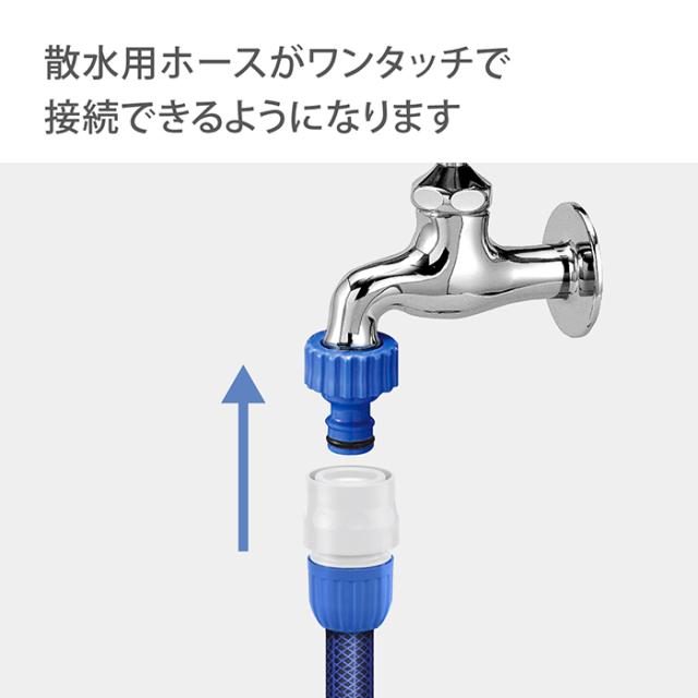 ネジ付き蛇口に取り付けて、コネクター(別売り)付きホースの取り外しがワンタッチで操作可能です。